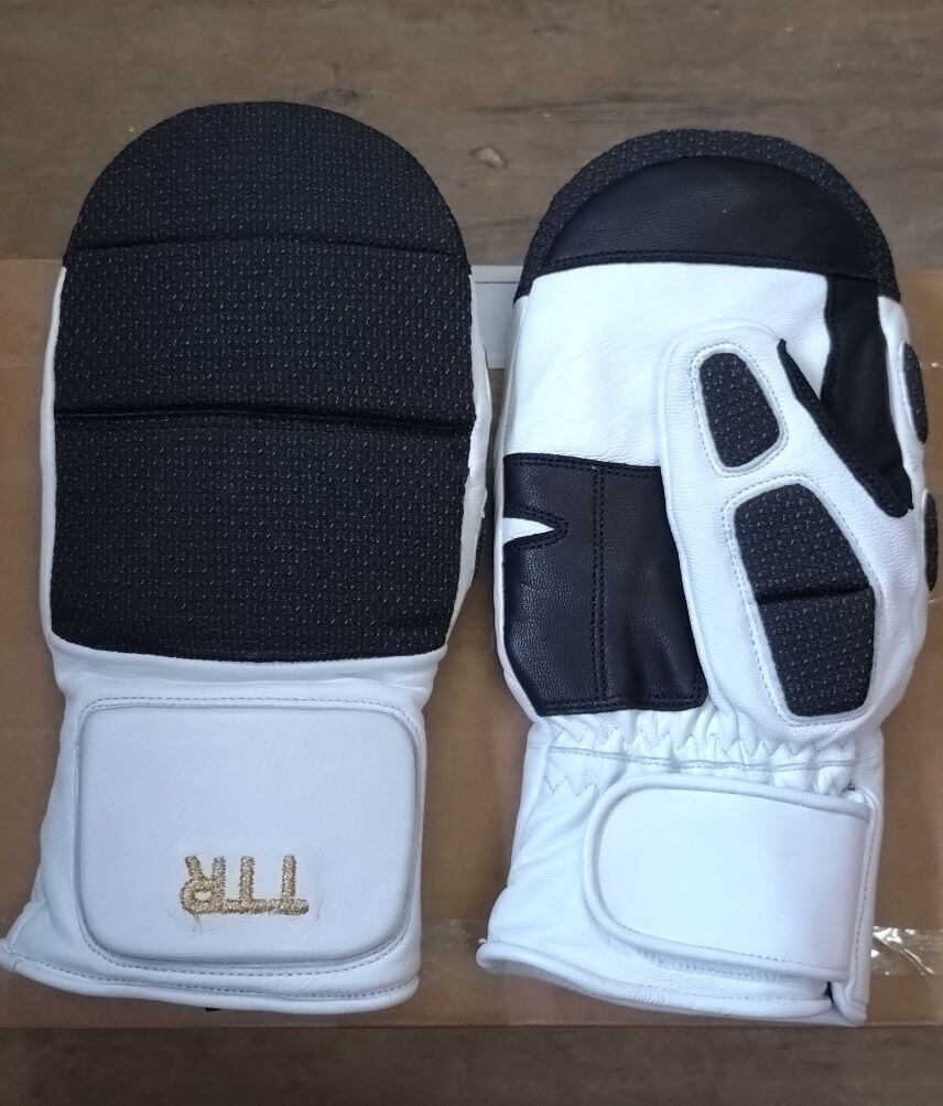 ニューモデルのゴートスキンを使用したレースミット。従来のタイプよりもシンプルで使いやすくなりました。